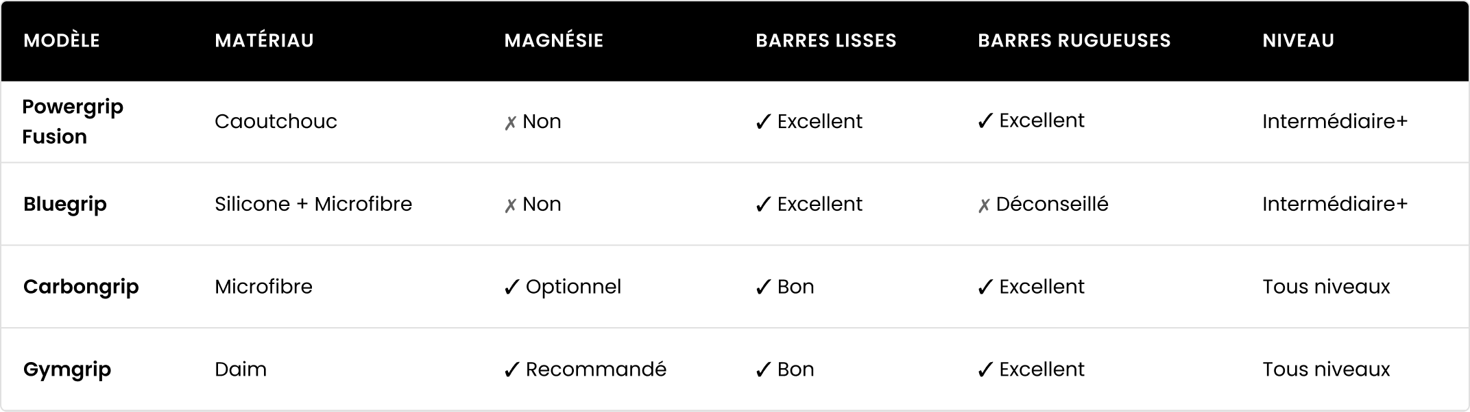 La elección del modelo adecuado depende de tu nivel, del tipo de barra y de tus preferencias de agarre.